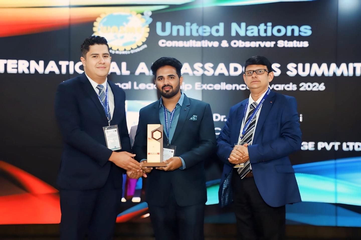 He has also received several prestigious recognitions, including the National Youth Inspiration Award, Iconic Peace Award (Council), and Bharat Gaurav Ratna Samman (Council Award) for his contributions toward youth empowerment, social harmony, and entrepreneurship.