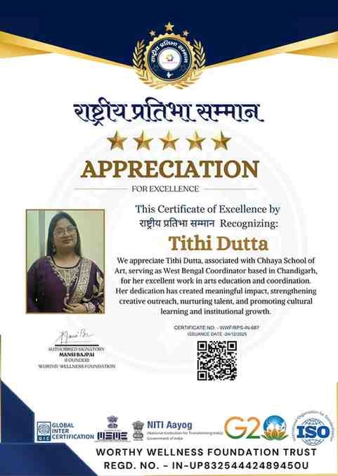 This recognition at the national level once again highlights Chandigarh Chhaya School of Art as an institution committed to excellence, creativity, and dedicated service in the field of art education.