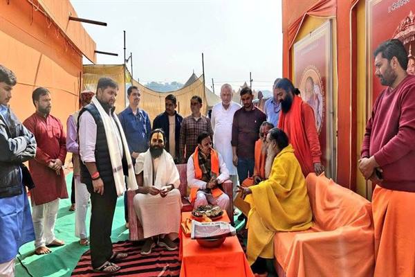 Deputy Chief Minister Shukla reached Satua Baba’s camp in Magh Mela area, Prayagraj and had a cordial meeting with Santosh Das (Satua Baba). On this occasion, there was dialogue on spiritual topics, eternal traditions and ideas related to social harmony. Also met Shrimad Jagadguru Narsingh Peethadhishwar Pujya Dr. Swami Narsingh Devacharya Ji Maharaj (Narsingh Temple – Geetadham Jabalpur) and received guidance and blessings.