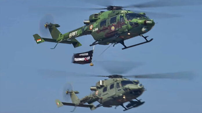 New Delhi. President Draupadi Murmu took the salute at the military parade while on duty on the occasion of the 77th Republic Day of India. The echo of Operation Sindoor was clearly visible in the military parade taking place on the duty path. Indian Army’s Operation Sindoor flag displayed on Dhruv Advanced Light Helicopter (ALH) during the parade.