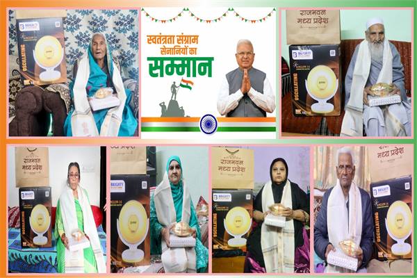 Bhopal : Governor Mangubhai Patel honored the freedom fighters at his home on the occasion of Republic Day. On behalf of Governor Patel, Lok Bhavan officials visited the houses of Bhopal resident freedom fighters and honored them.