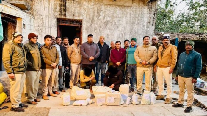 Ashoknagar: Indore Narcotics team raided Kadarana village of Chanderi and exposed MD Drugs factory. The team has seized drugs worth approximately Rs 4 crore from the spot. This high-tech MD drugs factory was being operated just a few kilometers away from Chanderi police station, but even the Ashoknagar police had no clue about it. Indore Narcotics team raided the illegal drugs factory located in Kadarana village of Chanderi on Tuesday night and succeeded in arresting two accused.