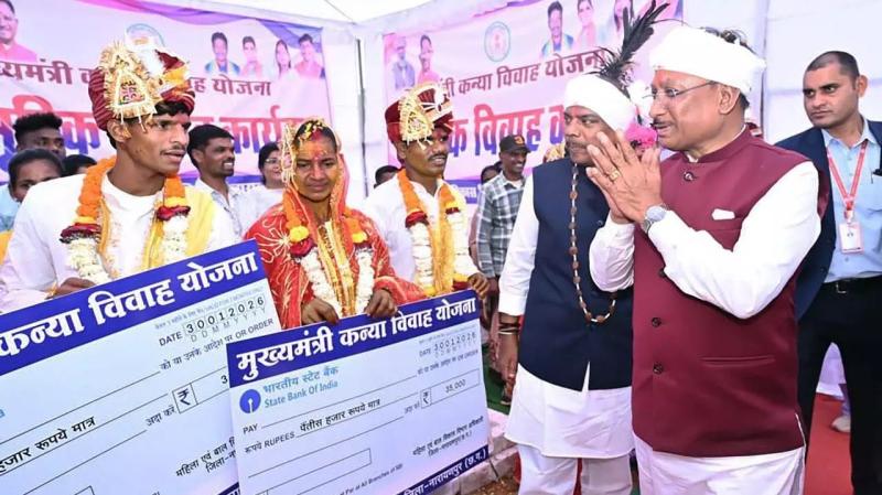 Narayanpur: A mass wedding ceremony of surrendered Maoists was organized today in the high school grounds of the district, in which Chhattisgarh Chief Minister Vishnudev Sai attended as the chief guest. The Chief Minister blessed the four newly married couples who have returned to the mainstream of society and wished them a happy and bright future.