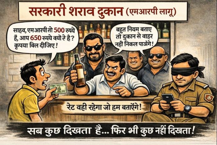 Bhopal/BalaghatIn most of the districts of Madhya Pradesh, the trend of selling liquor at liquor shops at prices higher than MRP is not showing any signs of stopping, The arbitrariness of liquor traders is running openly in almost most of the cities of the state including Bhopal, Indore, Gwalior, Jabalpur, Sagar, The game of over-rate is openly going on under the nose of the Excise Department, The situation is such that if a customer demands to be given liquor or bill as per MRP, it has become common for him to be threatened by the alleged henchmen sitting at the liquor shops, There have been many cases of intimidating and silencing customers who talk about the rules,